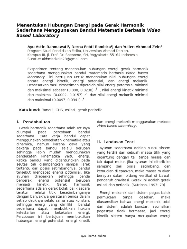 Penentuan Hubungan Energi Mekanik Dengan Energi Kinetik Dan Energi