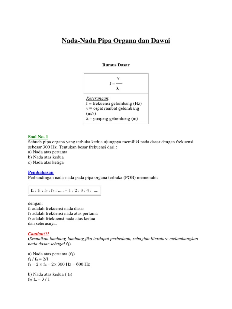 A frekuensi nada atas kedua dawai f 2 f 2 f 3 3 4 f 2 3 4 f 3 34 x 600 450 hz b frekuensi nada dasar dawai f o f o f 3 1 4 f o 1 4 f 3 14 x 600 150 hz soal no. Dengan f n menyatakan frekuensi dawai ke n 0 1 2 v menyatakan cepat rambat gelombang pada dawai dan l menyatakan panjang dawai. August 2 2016 admin 5 comments.