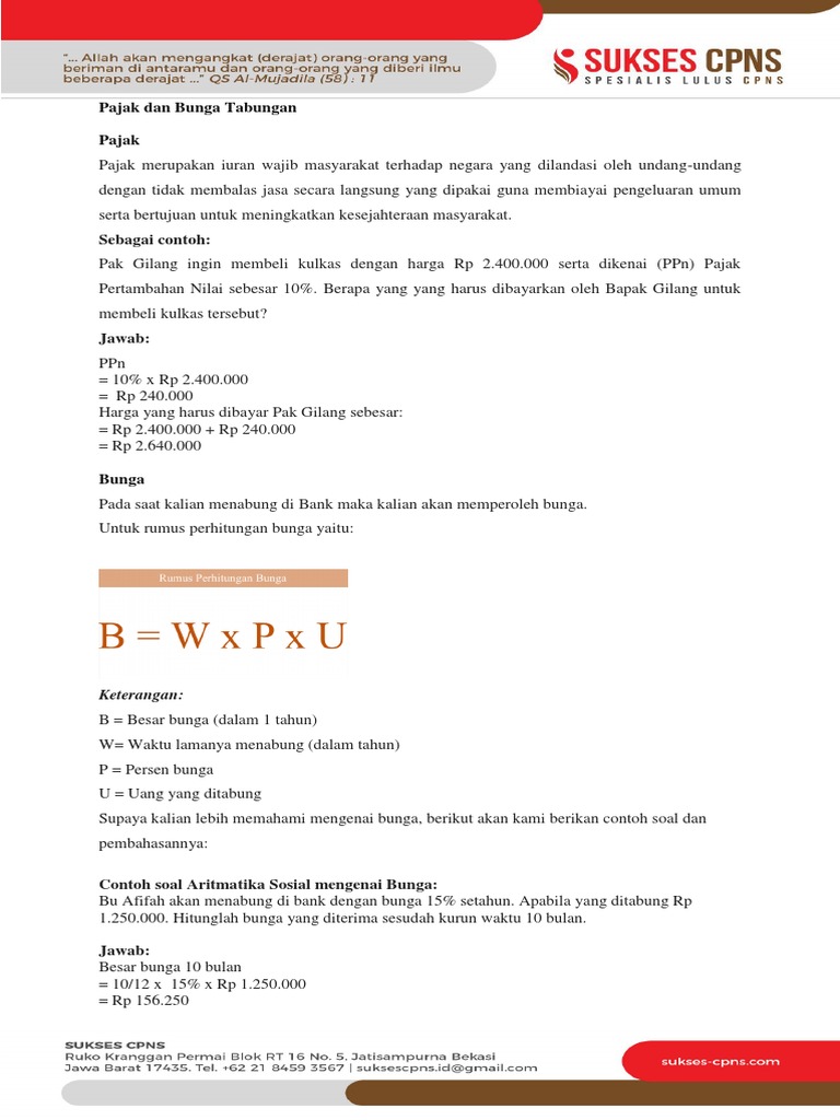 Rumus Cara Cepat Menghitung Persentase Bunga Aritmatika Sosial